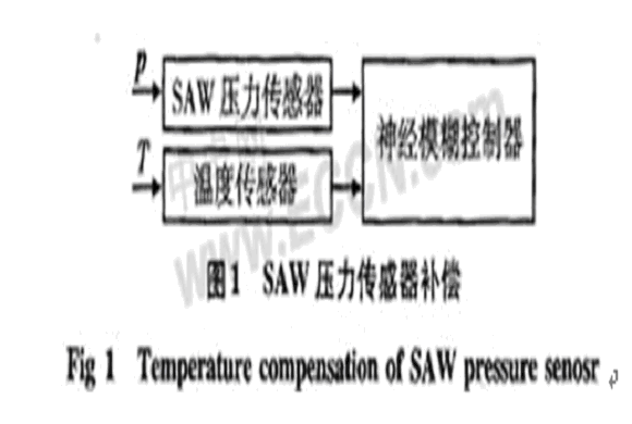 聲表面波(SAW)技術(shù)是一門新興熱門研究課題之一,國內(nèi)外已有溫度、壓力、加速度等傳感器的相關(guān)報道。SAW壓力傳感器借助于它無以倫比的性能,諸如:1)數(shù)字號輸出;2)高靈敏度、高分辨力、抗干擾能力強;3)易于大規(guī)模集成。正是由于這些自身的優(yōu)越性,它有著廣泛的應(yīng)用領(lǐng)域。但美中不足的是SAW壓力傳感器對環(huán)境的要求比較苛刻,SAW振蕩器輸出頻率信號隨著壓力、溫度、磁場等外界因素變化而變化,特別是溫度的影響是測量誤差的主要來源,為保證SAW壓力傳感器高準確度和高靈敏度測量,必須進行有效的溫度補償。本文將神經(jīng)網(wǎng)絡(luò)和模糊控制技術(shù)相結(jié)合,對SAW壓力傳感器進行智能化溫度補償,通過此方法進行的改進,使SAW壓力傳感器能更好地應(yīng)用到工程領(lǐng)域。