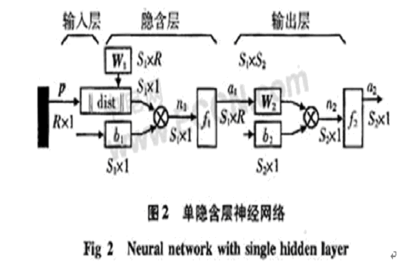其中,p為輸入矢量,R為輸入矢量維數(shù),S1為隱含層神經(jīng)元個數(shù),S2為輸出層神經(jīng)元個數(shù),W1為隱含層神經(jīng)元權(quán)值矩陣,W2為輸出層權(quán)值矩陣,b1為隱含層神經(jīng)元閥值,b2為隱含層神經(jīng)元閥值,n1為隱含層輸入節(jié)點,n2為輸出層節(jié)點。f1為S型函數(shù),f2為purelin型函數(shù)。神經(jīng)網(wǎng)絡(luò)算法是用于前饋多層網(wǎng)絡(luò)的學習算法。如果輸出不能得到期望的輸出,則轉(zhuǎn)入后向傳播。通過誤差的后向傳播調(diào)整各層之間的權(quán)系數(shù)。反復(fù)輸入樣本序列,直至權(quán)系數(shù)不在改變?yōu)橹梗敵稣`差在規(guī)定的范圍之內(nèi)。算法采用如下改進:1)采用模擬退火法以克服局部最??;2)用奇函數(shù)作激勵函數(shù)和傳播過程中采用新誤差傳播因子完善該算法收斂性問題。