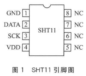 溫濕度傳感器SHTll集溫度傳感器和濕度傳感器于一體,因此采用SHTll進(jìn)行溫濕度實(shí)時(shí)監(jiān)測(cè)的系統(tǒng)具有精度高、成本低、體積小、接口簡單等優(yōu)點(diǎn);另外SHTll芯片內(nèi)部集成了14位A/D轉(zhuǎn)換器,且采用數(shù)字信號(hào)輸出,因此抗干擾能力也比同類芯片高。該芯片在溫濕度監(jiān)測(cè)、自動(dòng)控制等領(lǐng)域均已得到廣泛應(yīng)用。