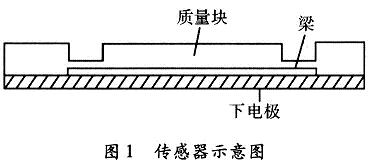 壓阻式加速度傳感器的彈性元件一般采用硅梁外加質(zhì)量塊,質(zhì)量塊由懸臂梁支撐,并在懸臂梁上制作電阻,連接成測量電橋。在慣性力作用下質(zhì)量塊上下運動,懸臂梁上電阻的阻值隨應(yīng)力的作用而發(fā)生變化,引起測量電橋輸出電壓變化,以此實現(xiàn)對加速度的測量。