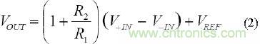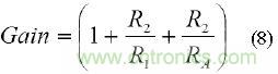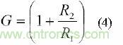 等式(3),R1與R2之比將增益設(shè)為: