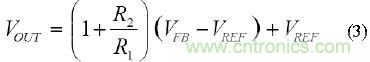 由于輸入之間的電壓等于反饋(FB)與參考(REF)端子之間的電壓時(shí),放大器的反饋要求可得到滿足,因此,我們可將該公式重寫為