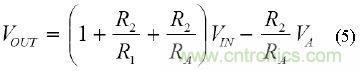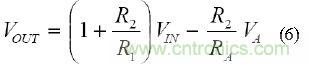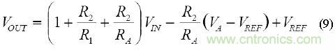 如果相對(duì)于原始等式中的VREF取VOUT和VA,則可得到相同的結(jié)果。 VA(MAX)~VREF也應(yīng)替換等式(7)中的VA(MAX)。