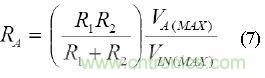 為了找到一個(gè)RA值以允許最大失調(diào)調(diào)整范圍VIN(MAX), 在給定調(diào)整電壓范圍VA(MAX)的情況下,使VOUT=0,求RA,結(jié)果得到