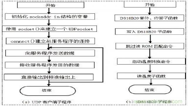 根據(jù)DS18B20的通訊協(xié)議,主機(jī)(單片機(jī))控制DS18B20完成溫度轉(zhuǎn)換必須經(jīng)過三個(gè)步驟:每一次讀寫之前都要對(duì)DS18B20進(jìn)行復(fù)位操作,復(fù) 位成功后發(fā)送一條ROM指令,最后發(fā)送RAM指令,這樣才能對(duì)DS18B20進(jìn)行預(yù)定的操作。該流程框圖如圖2(b)所示。