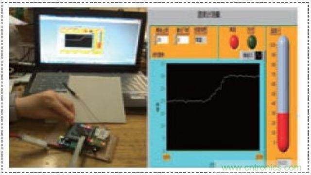 本系統(tǒng)對(duì)一個(gè)溫度傳感器傳輸?shù)臄?shù)據(jù)進(jìn)行了測(cè)試,得到的結(jié)果和溫度及所測(cè)的結(jié)果非常接近,但是其比溫度計(jì)的靈敏度和分辨率要高很多。另外系統(tǒng)工作也非常穩(wěn)定,環(huán)境的影響也很小。圖3是測(cè)試的結(jié)果,其中20℃的時(shí)候?yàn)槭覝?,溫度升高是由于用手觸摸傳感器所致。