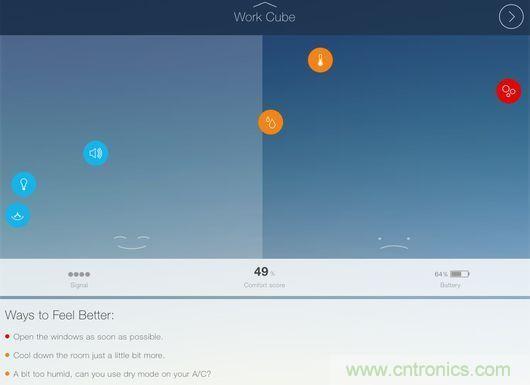 測試人員發(fā)現(xiàn),CubeSensors給出的這些信息較想象中更為有用。例如,產(chǎn)品提示一處起居室的溫度有點(diǎn)低,如果適當(dāng)提升溫度會讓人感覺更加舒適及放松。而在辦公室中,CubeSensors提示改善光照條件能夠幫助提升工作效率。在臥室中,產(chǎn)品給出了需要開窗以便改善空氣質(zhì)量的建議。用戶除了查看數(shù)據(jù)之外,還能看到應(yīng)用給出的實(shí)用建議,例如“盡快開窗”或“提升溫度會讓你感覺更加舒適”。盡管看起來似乎平淡無奇,但CubeSensors背后的團(tuán)隊表示,通過這些小建議,產(chǎn)品可以幫助用戶避免罹患感冒、過敏、頭疼等癥狀。