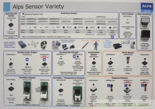 日本阿爾卑斯電氣株式會(huì)社(Alps Electric)展示其傳感器組合(下圖),這同時(shí)也可作為傳感器領(lǐng)域應(yīng)用多樣化的一個(gè)指標(biāo)。該公司并未在活動(dòng)中發(fā)表新芯片,而是與網(wǎng)關(guān)供貨商、美國云端運(yùn)算軟件供貨商Mode連手展示使用其模塊開發(fā)的端對(duì)端物聯(lián)網(wǎng)解決方案。