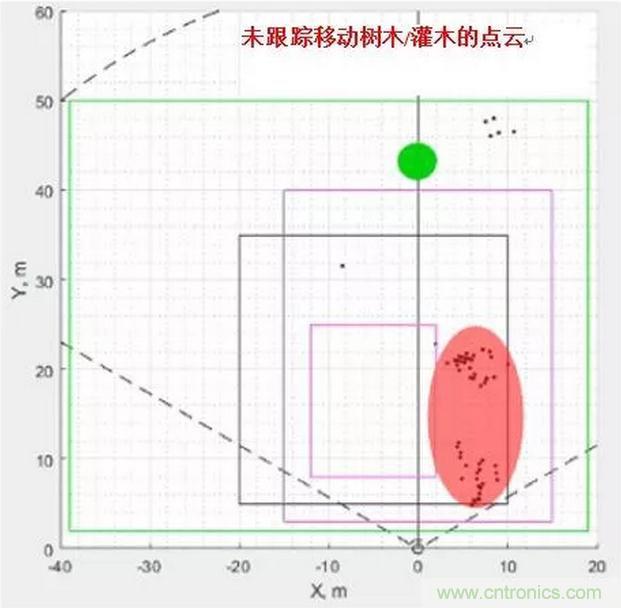 圖2顯示了使用毫米波技術(shù)的入侵檢測(cè);毫米波傳感器分析場(chǎng)景中對(duì)象的速度,過(guò)濾掉移動(dòng)背景中的運(yùn)動(dòng),僅跟蹤人物。