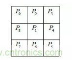 攝像機(jī)坐標(biāo)系位于攝像機(jī)中心,而世界坐標(biāo)系位于平面棋盤格靶標(biāo)上。一個(gè)特征點(diǎn)在攝像機(jī)坐標(biāo)系下坐標(biāo)與其在世界坐標(biāo)系下坐標(biāo)之間的對(duì)應(yīng)關(guān)系可以用下式來表達(dá):